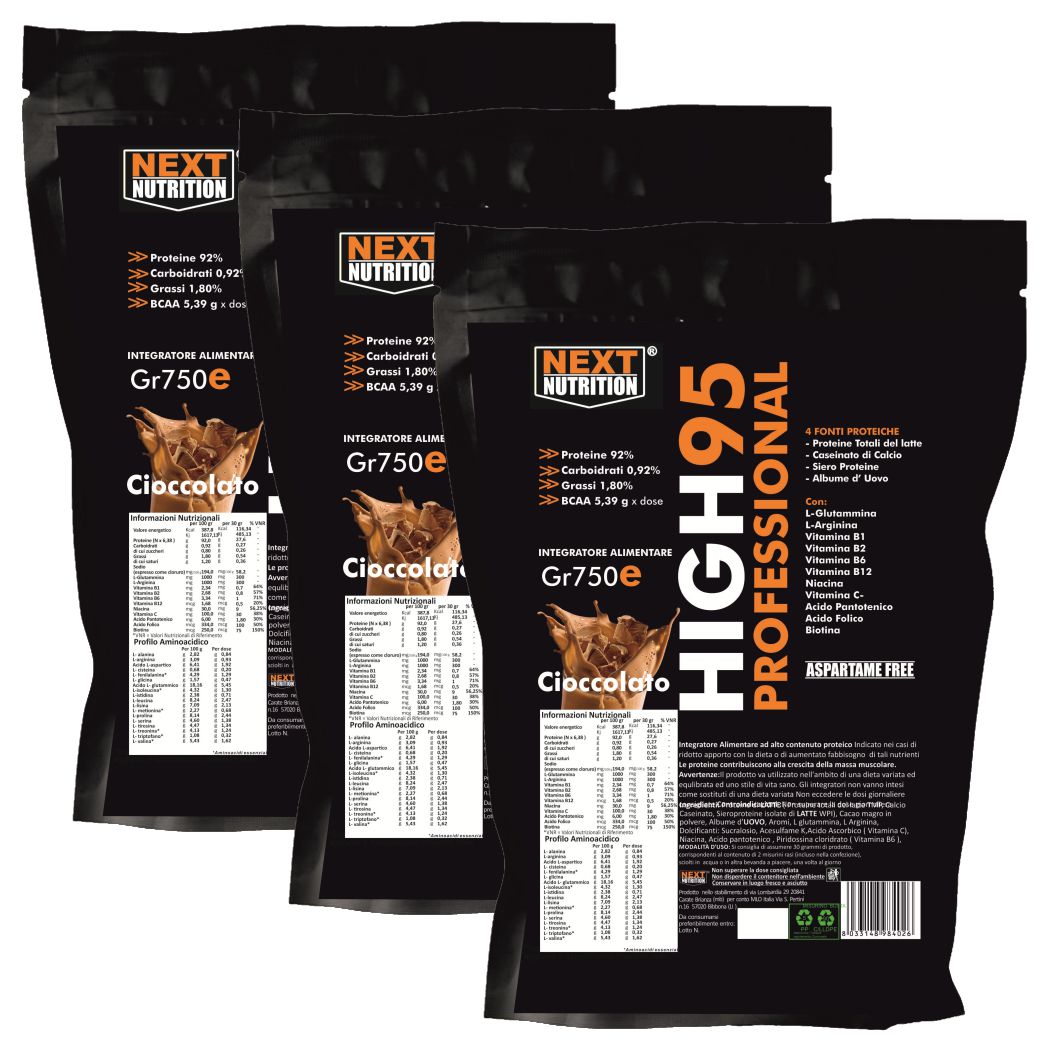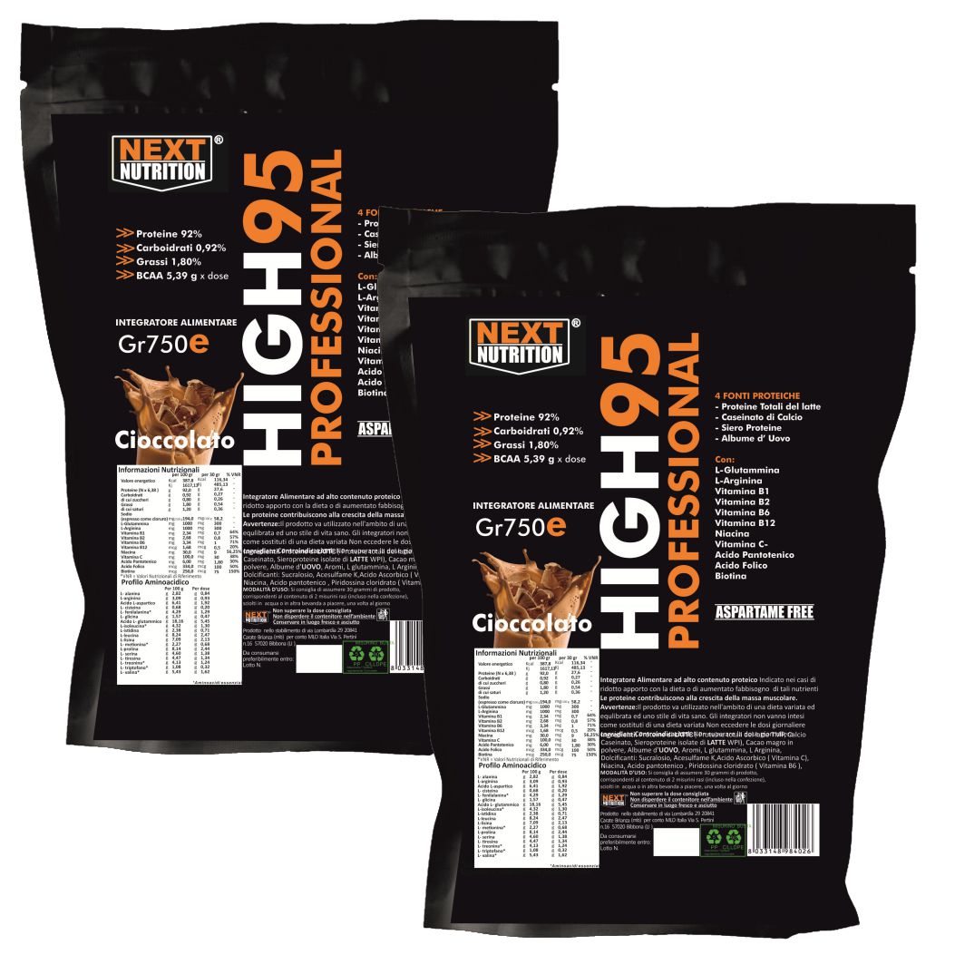Integratore proteico ad elevata efficacia. HIGH 95 PROFESSIONAL è un integratore proteico di alta qualità. ideale per il dimagrimento e la costruzione di massa muscolare. Basso contenuto, grassi e carboidrati, offre un rilascio lento e graduale per sazietà prolungata. Senza Aspartame, alta % di proteine è lo shake proteico perfetto.