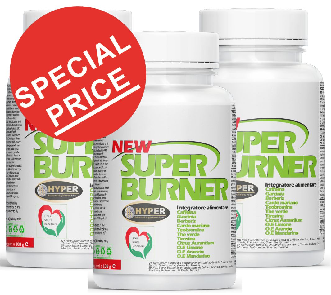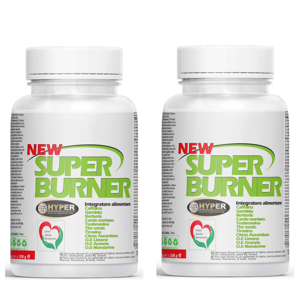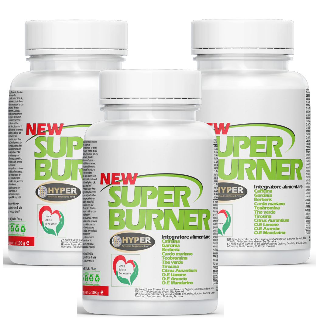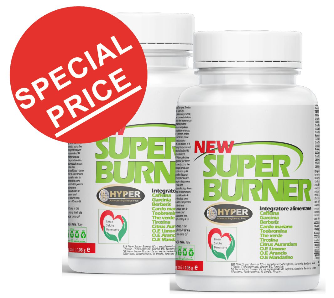 Accelera il tuo metabolismo con New Super Burner,l’integratore con una forte azione termogenica brucia grassi Con Caffeina, Garcinia, Berberis, Cardo Mariano, Teobromina, Tè Verde, Tirosina, Citrus Aurantium, Ideale per chi segue diete ipocaloriche finalizzate al controllo e alla perdita di peso.